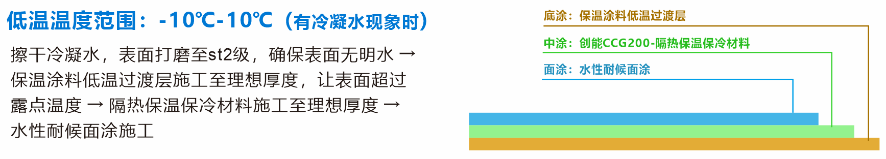 不同溫度范圍的,以及在施工物體表面有冷凝水的情況下我們的產(chǎn)品維護方案略有不同,具體詳見不同溫度范圍的施工說明。